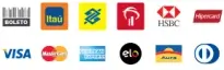 Cartão de crédito em até 12x, boleto bancário ou Pix.